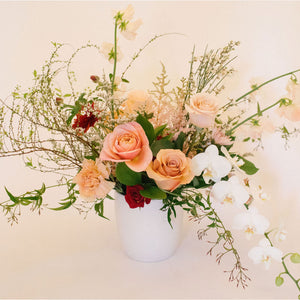 A mixture of standard and premium blooms will be included in your arrangement such as roses, orchids, garden roses, ranunculus, sweet peas, etc.